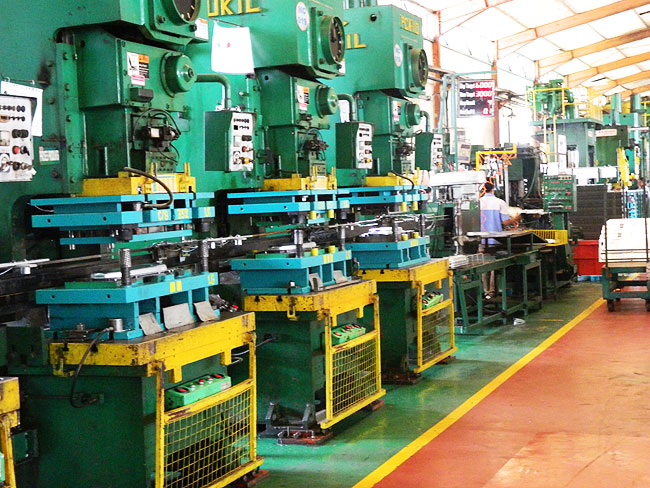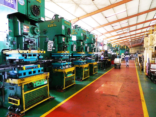 PT. Geum Cheon INDO Divisi Metal Stamping, memiliki fasilitas mesin press berkapasitas 60 ton sampai dengan 600 ton jenis mesin yang terdiri dari jenis mekanik dan hidrolik. Bahan baku yang diproses adalah stamping lembaran dengan ketebalan 0,3 mm sampai 8 mm. Jenis material yang sering digunakan SPHC, SPCC, SGCC, SECC dan Galvalum. Kapasitas produksi Divisi Metal Stamping mencapai 600 ton/bulan. Dengan penerapan sistem T5S dan TPM dapat menghasilkan produktivitas yang optimal dan cacat produk dapat diminimalkan.